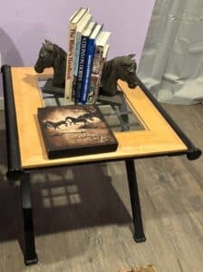 Antique folding chairs and other side chairs and tables,  Horse decor, Hammock, Mens clothing, Rugs, Lines, Holiday Decor, Candles, Hallmark cards, Director chairs, Cool hand made wood box stands and so much more.