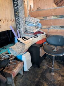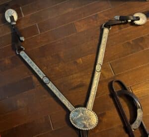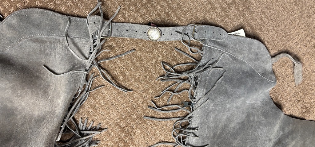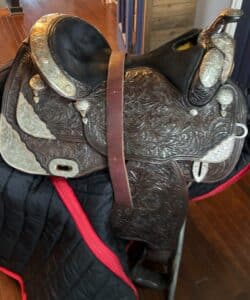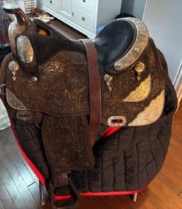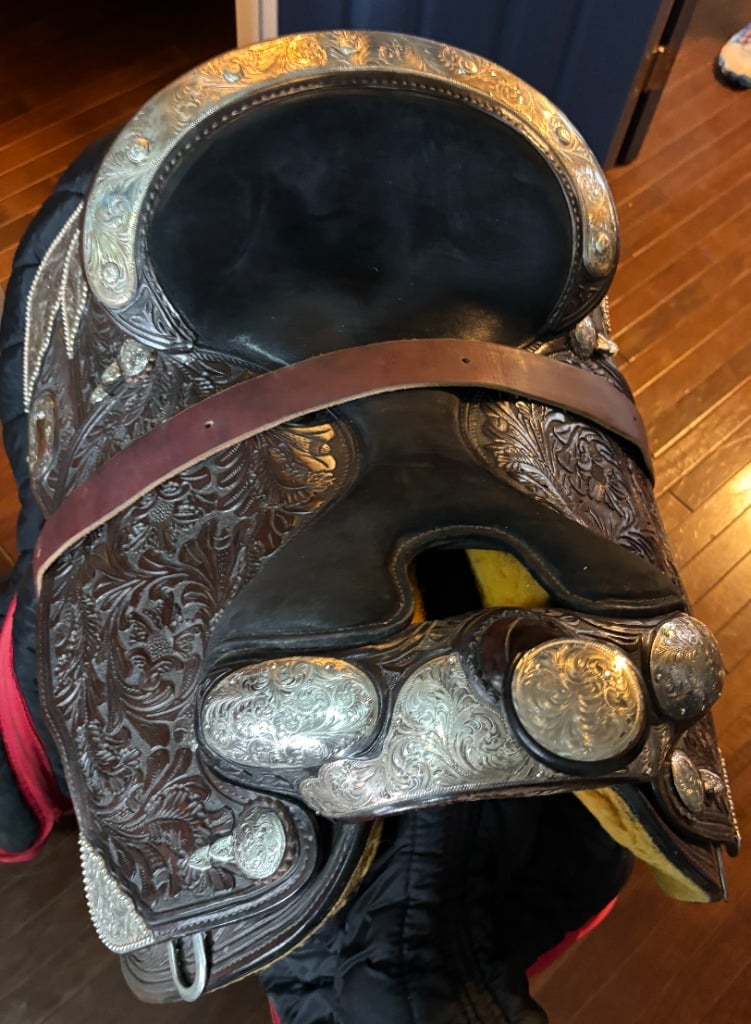 Ower was a Horseman and has fabulous stuff. Suede leather chaps, Saddelry and Horse tack, Silver show Saddle by Dale Chavez with Reins, LaSalle Bussel, Show Curtain.  Leather English Saddle and LOTS of other Tack.  Hay, Stock tanks, Troughs, Gates, Corral panels, Gun Cabinet, Cow hide rug,
