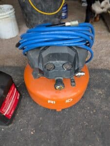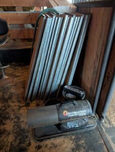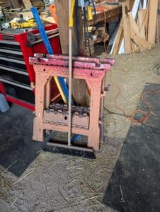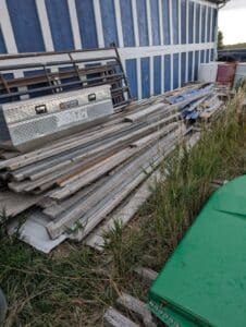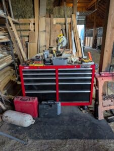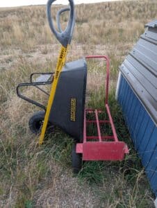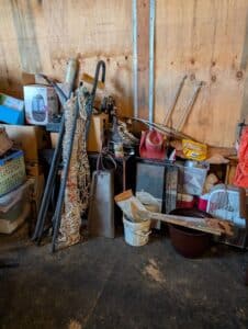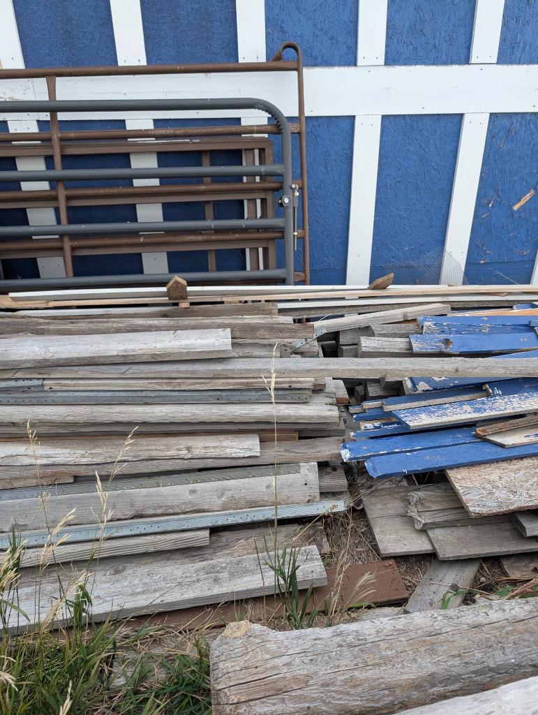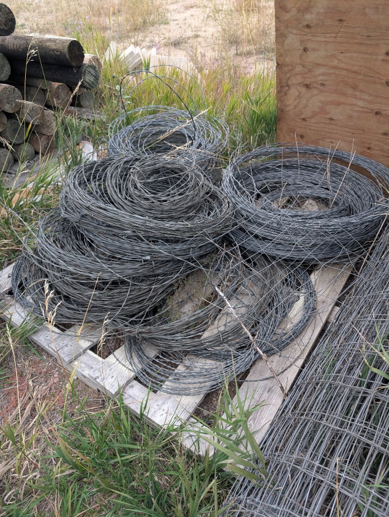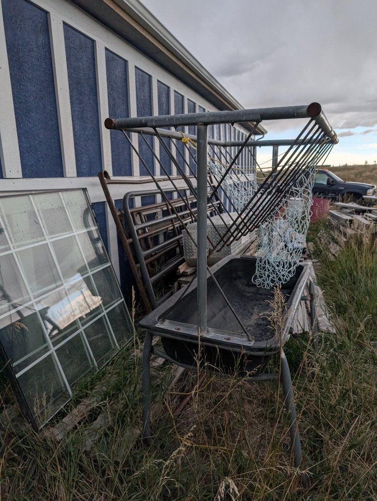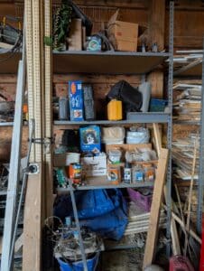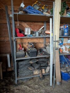 Commercial grade Metal shelving, Metal Dog house, Wire, Box Screen, White Lighting Fencing, Brush Hog, Hydraulic lift trailer, 2×6 square posts, Drag, Composter, Wood, Saws, Tool Bench, Drill Press, Ramps, Scroll Saw, Tools, Building supplies, Pressure washer and lots of other tools and toys!