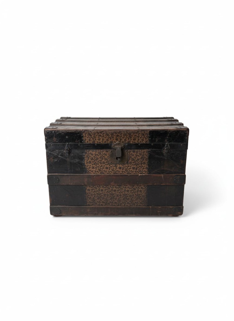 Antique Embossed Tin Steamer Trunk with Floral Motif