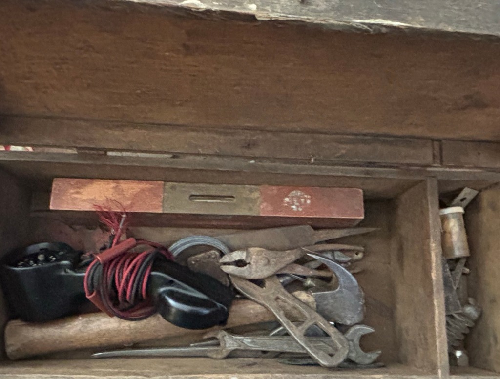 Antique Wooden Tool Chest with Assorted Hand Tools