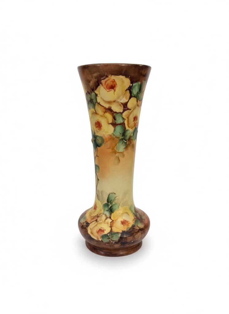 Art Nouveau Ceramic Vase with Roses