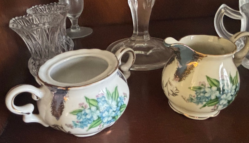 Assorted Vintage Pressed Glassware and Floral China Set