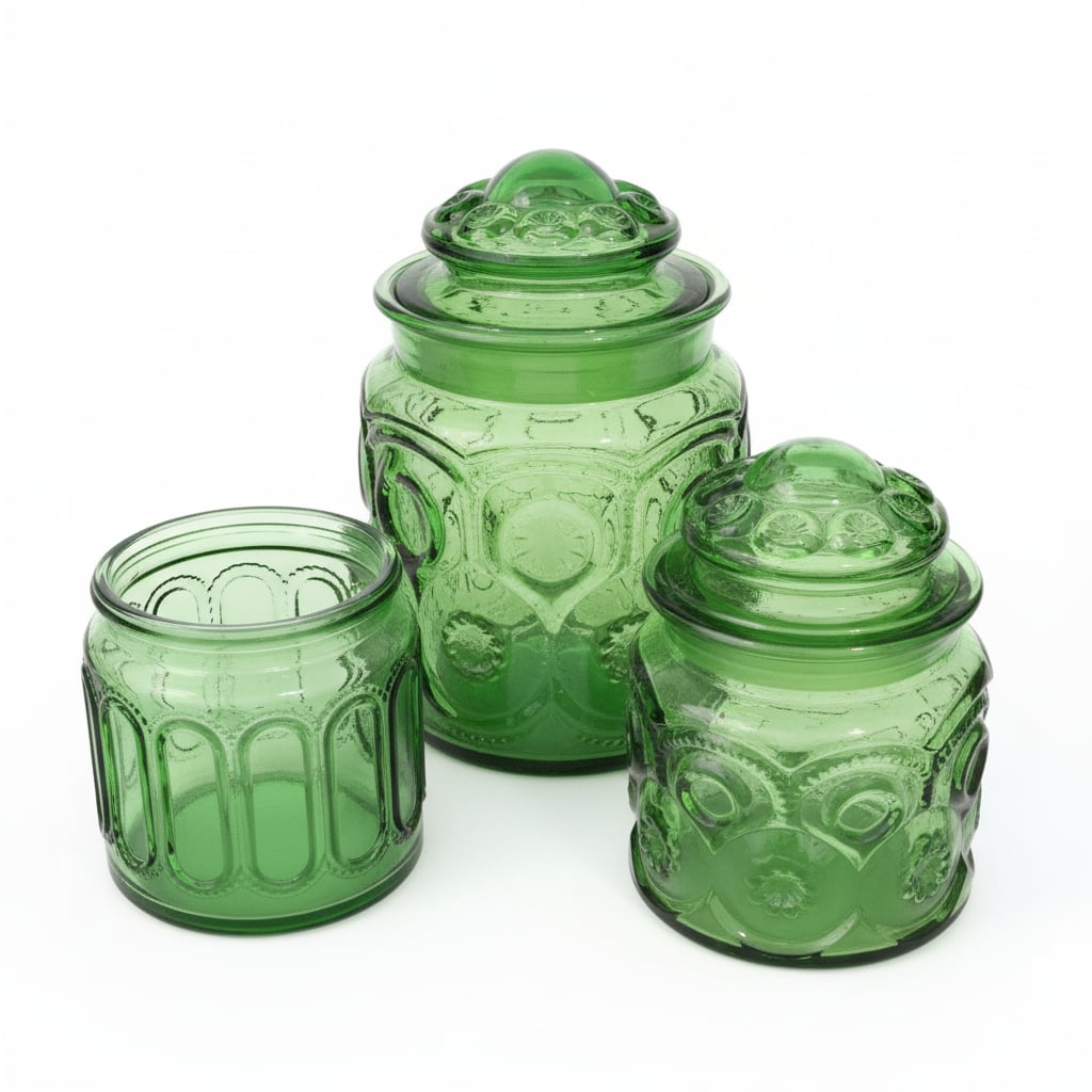 L.E. Smith Green Moon and Stars Pattern Glass Canister Set
