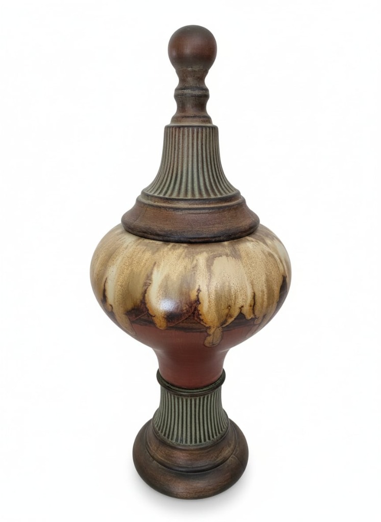 Large Ceramic and Wood Urn Form Table Lamp Base