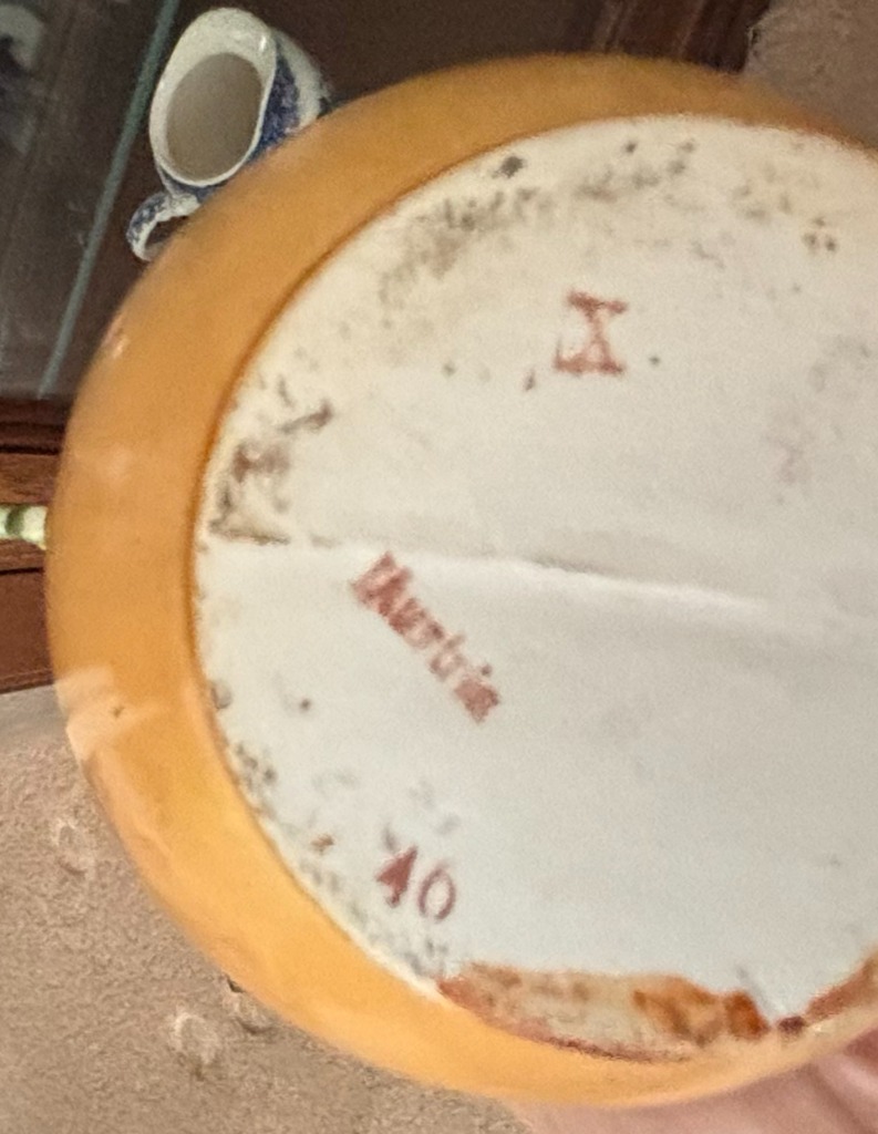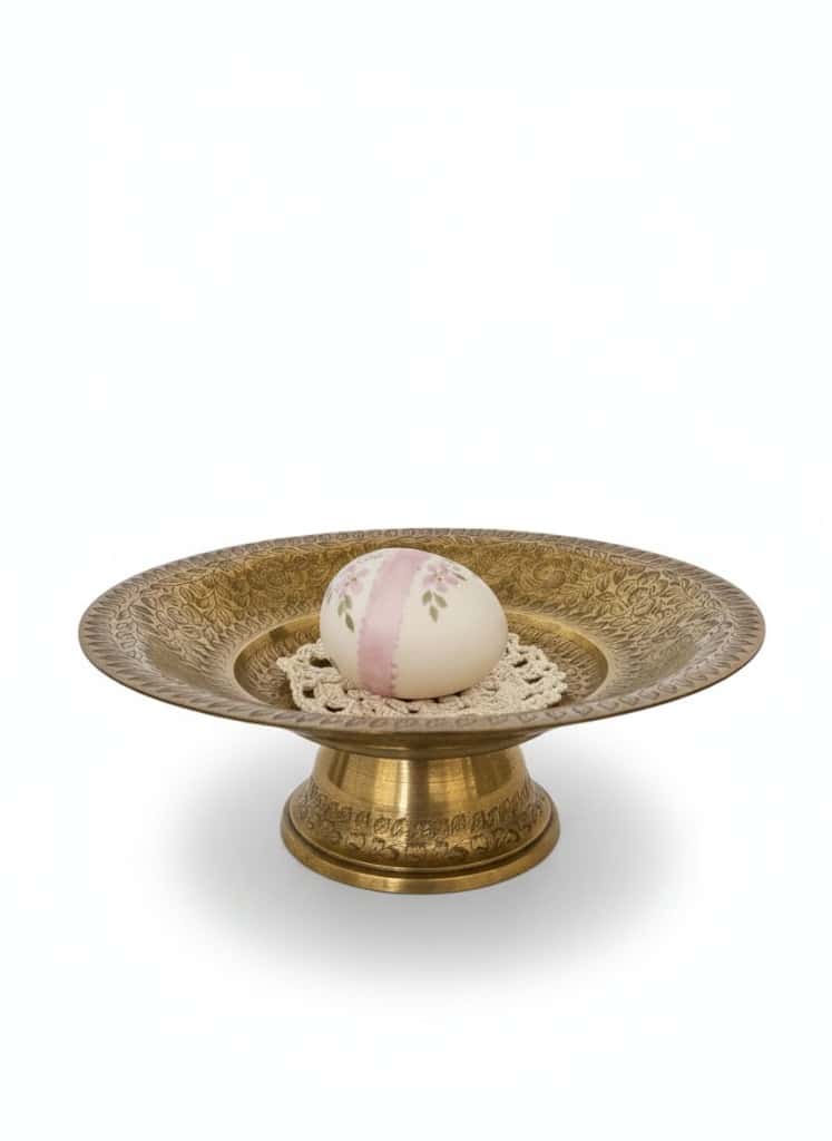 Victorian Brass Compote with Hand-Painted Egg on Iridescent Bicentennial Glass Plate