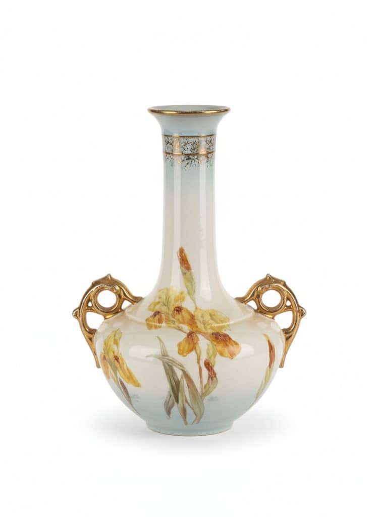 Robert Hanke Porcelain Vase with Gilt Handles and Floral Motif