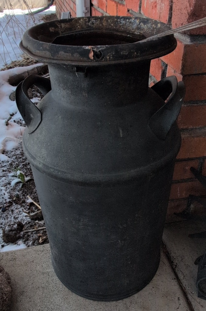 Vintage Black Galvanized Metal Milk Can