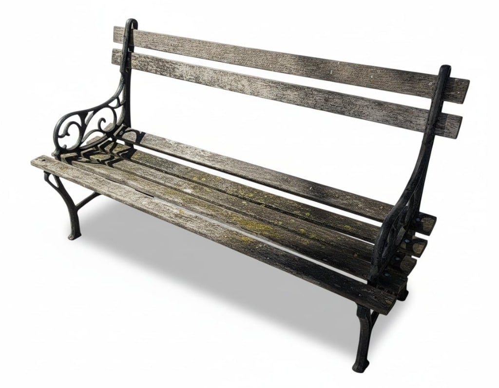 Vintage Cast Iron and Wood Slat Garden Bench