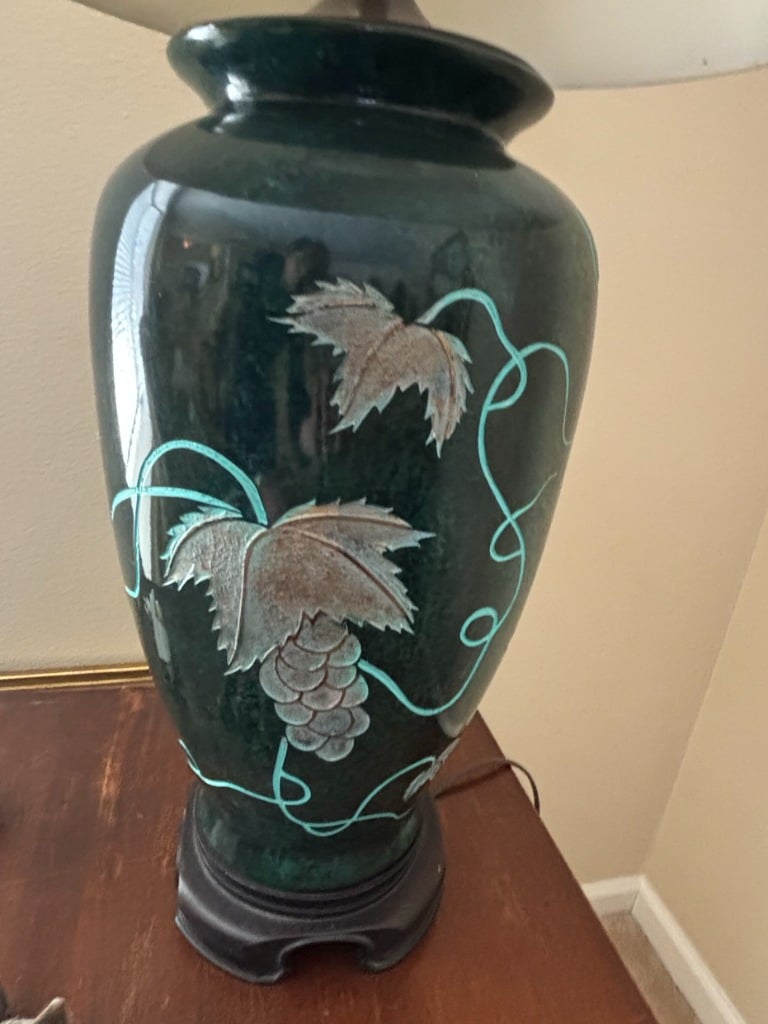 Vintage Ceramic Table Lamp with Grapevine Motif