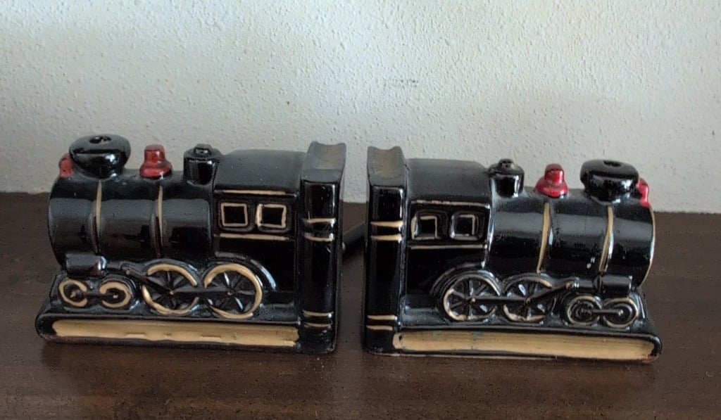 Vintage Ceramic Train Engine Bookends