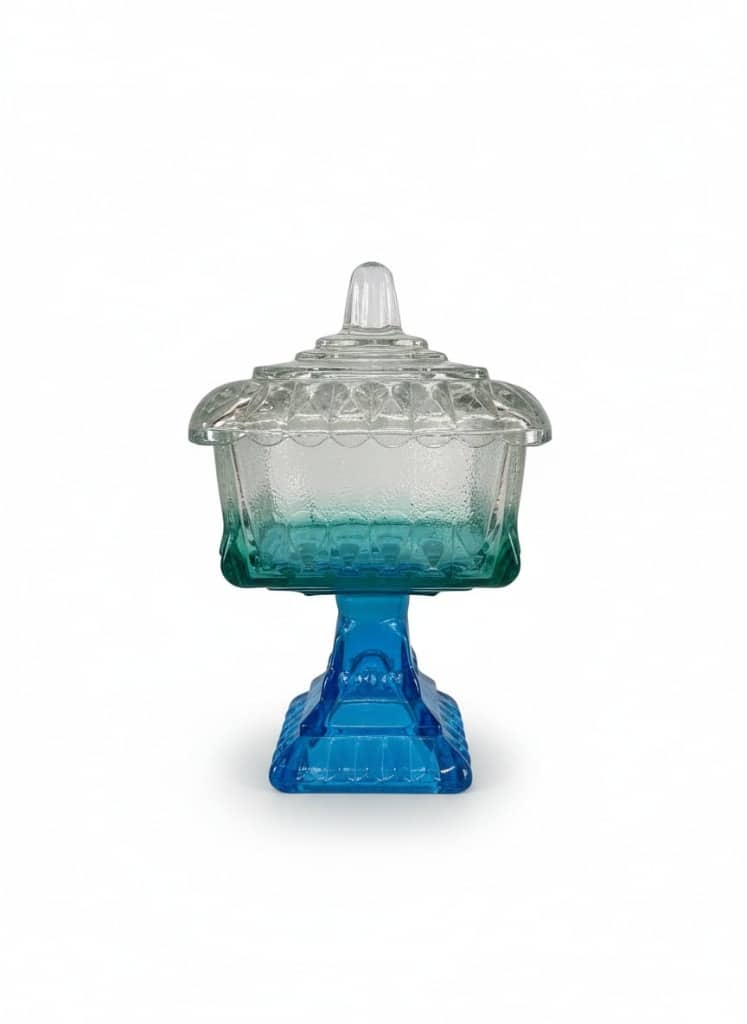 Vintage L.E. Smith Moon and Stars Blue Candy Dish with Lid