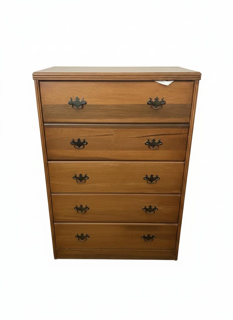 Vintage Maple Wood Dresser with Ornate Pulls