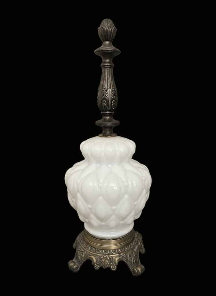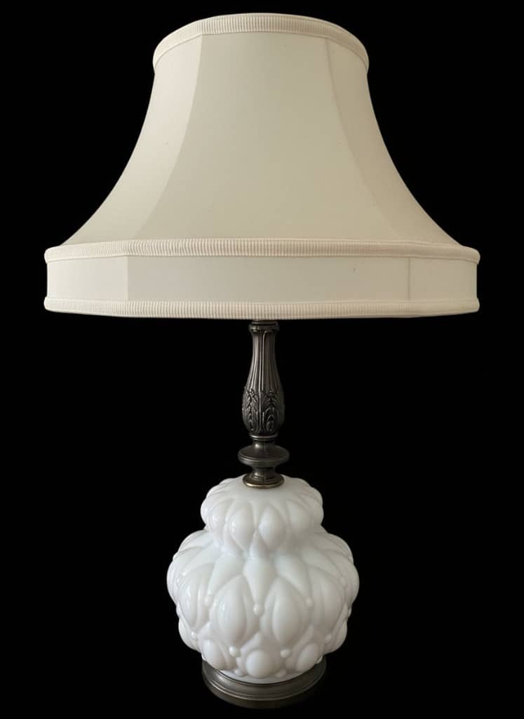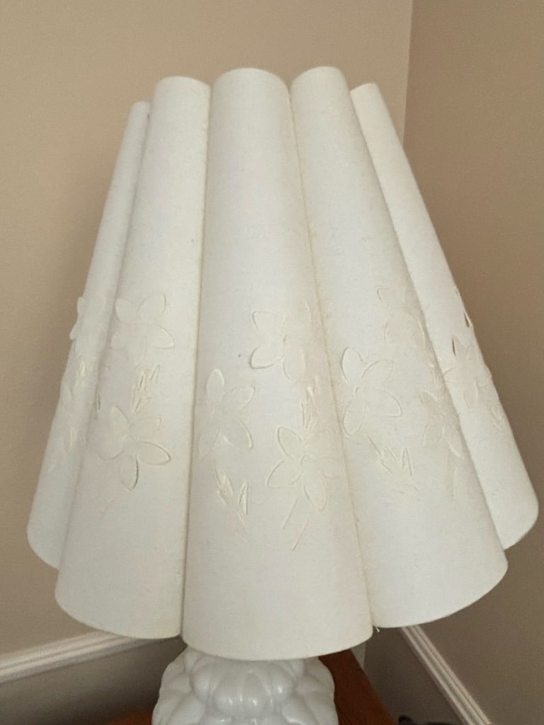Vintage Milk Glass Gone with the Wind Style Lamp with Embossed Shade