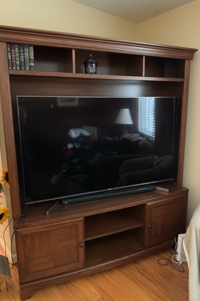 Wooden Media Console with Hutch