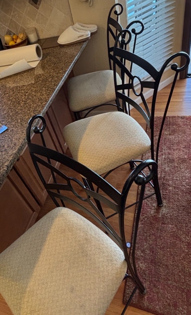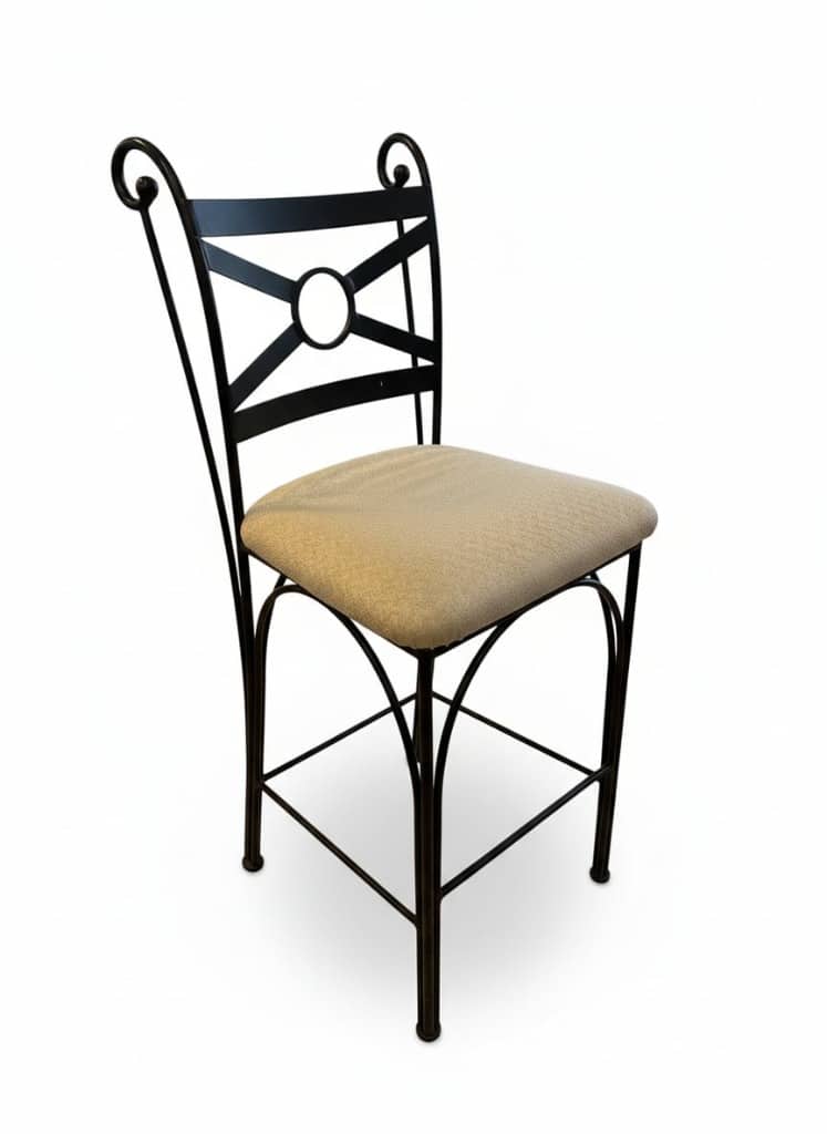 Wrought Iron Bar Stools with Upholstered Seats