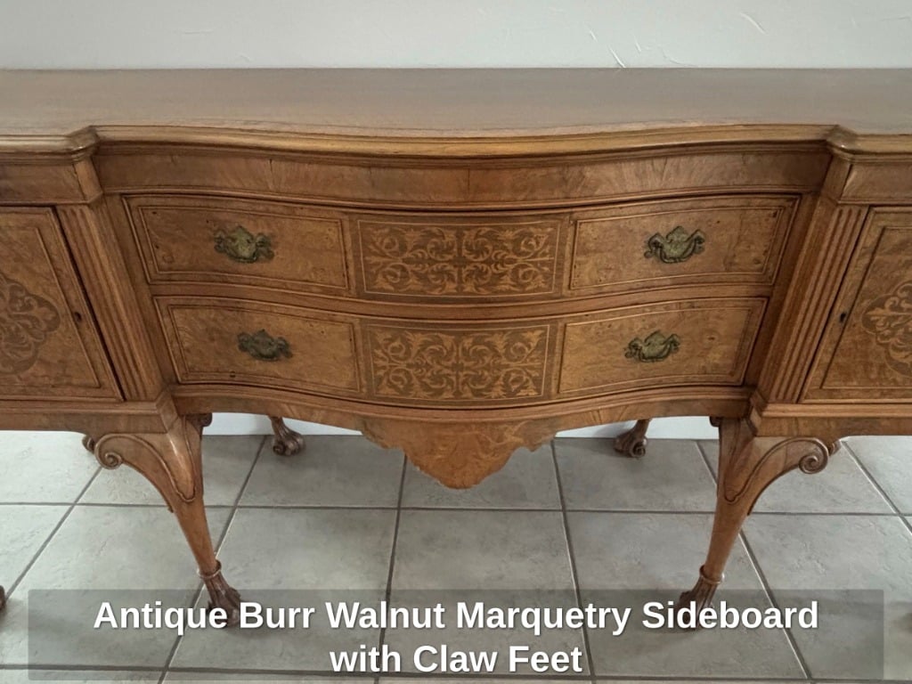 * Antique Burr Walnut Marquetry Sideboard with Claw Feet