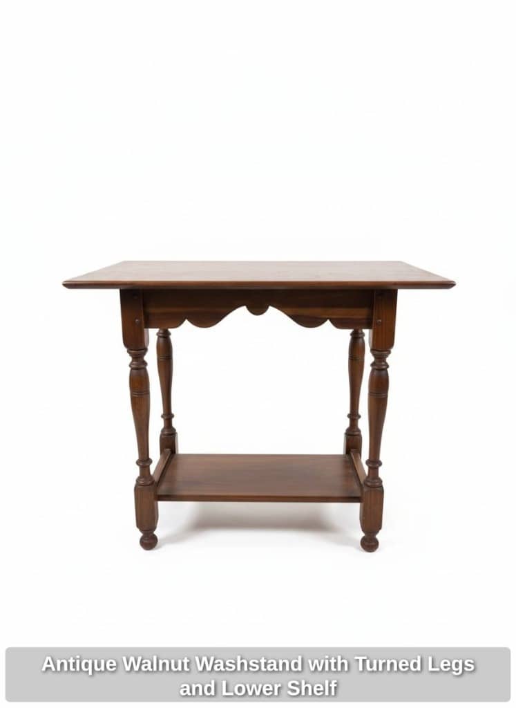 * Antique Walnut Washstand with Turned Legs and Lower Shelf