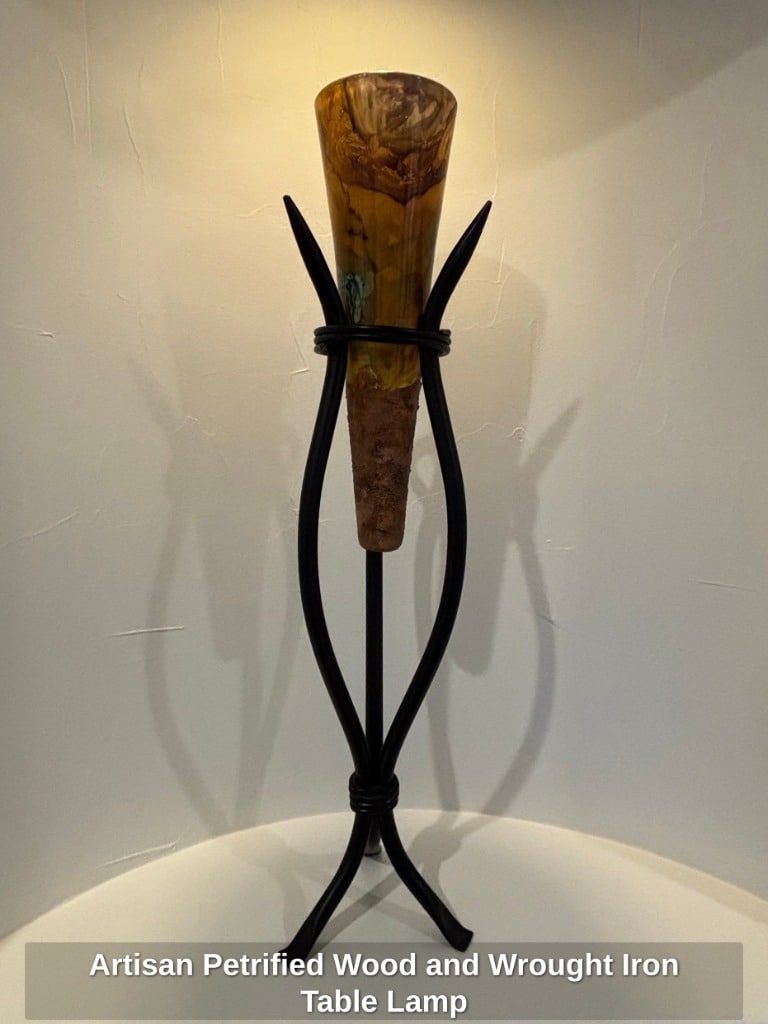 * Artisan Petrified Wood and Wrought Iron Table Lamp