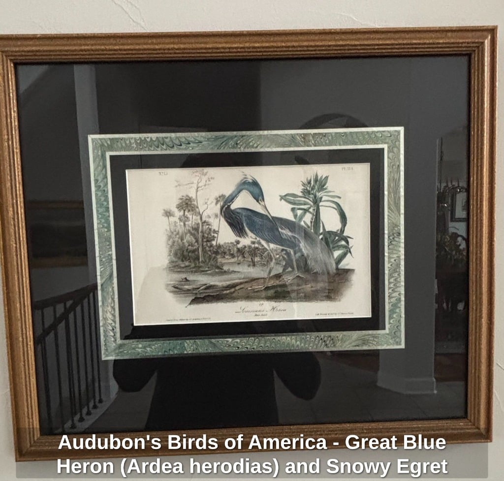 * Audubon’s Birds of America – Great Blue Heron (Ardea herodias) and Snowy Egret (Ardea candidissima) Lithographs