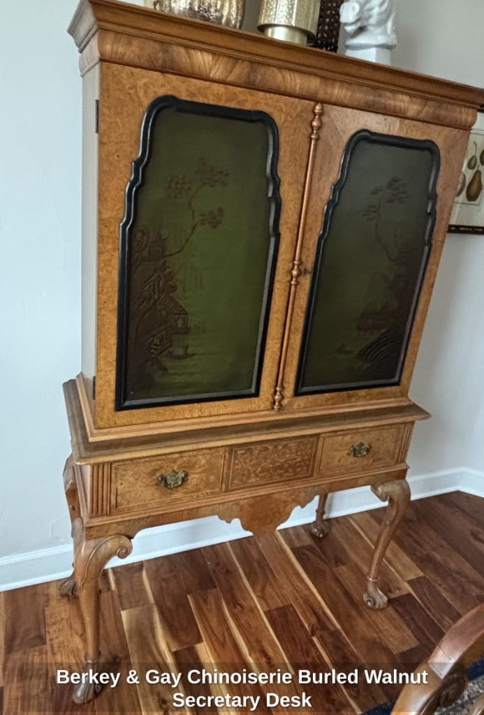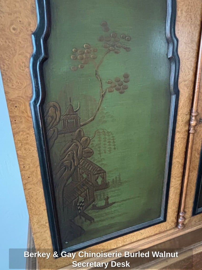 * Berkey & Gay Chinoiserie Burled Walnut Secretary Desk