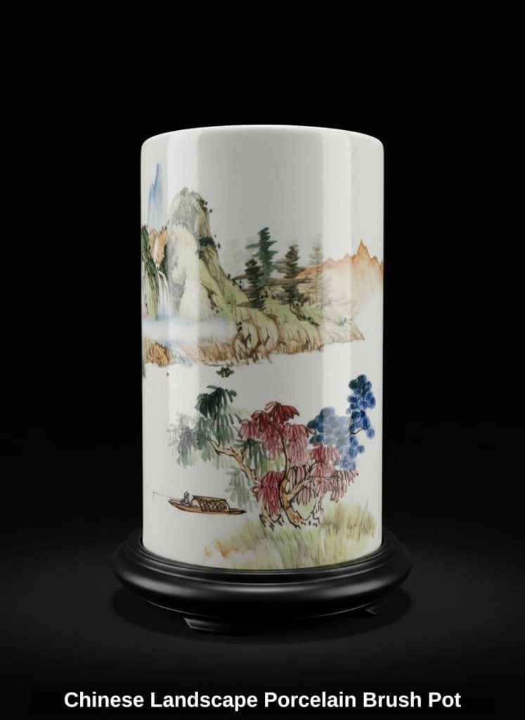 * Chinese Landscape Porcelain Brush Pot