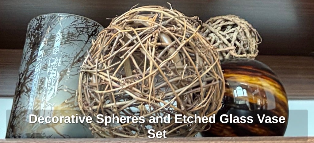 * Decorative Spheres and Etched Glass Vase Set