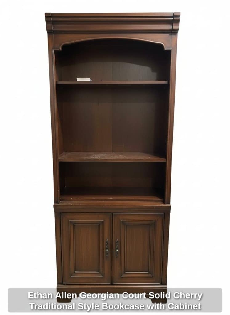 * Ethan Allen Georgian Court Solid Cherry Traditional Style Bookcase with Cabinet Base