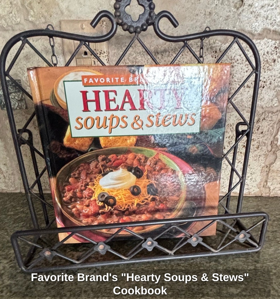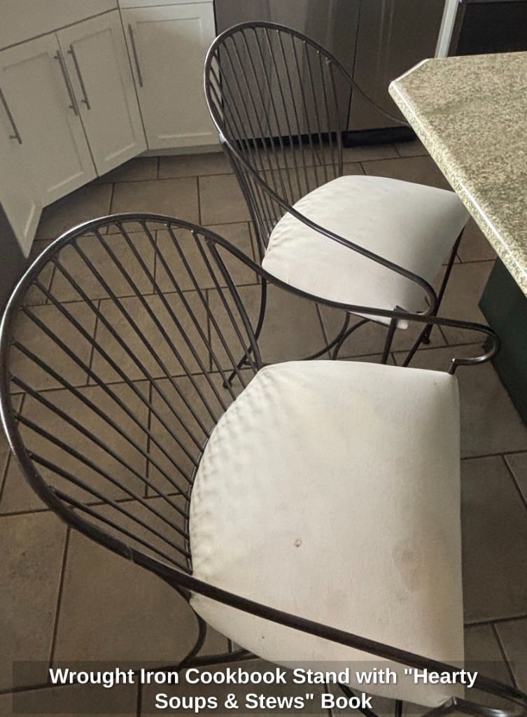 * Wrought Iron Cookbook Stand with “Hearty Soups & Stews” Book