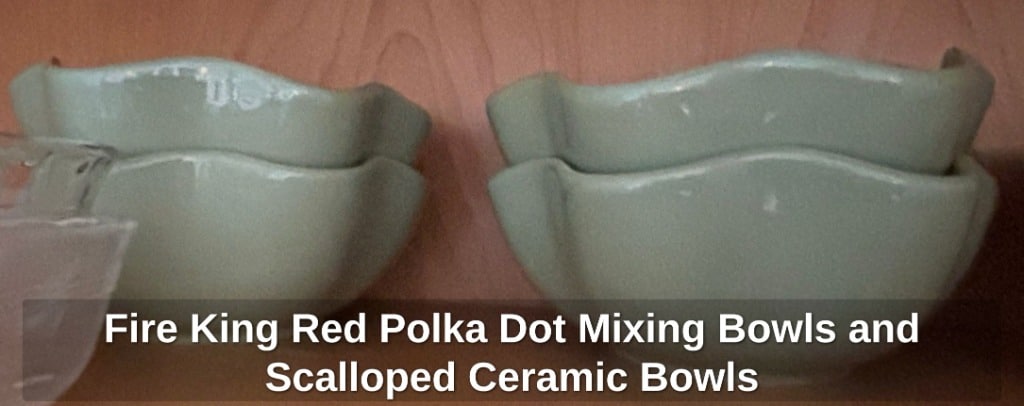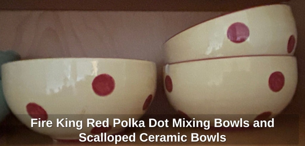 * Fire King Red Polka Dot Mixing Bowls and Scalloped Ceramic Bowls