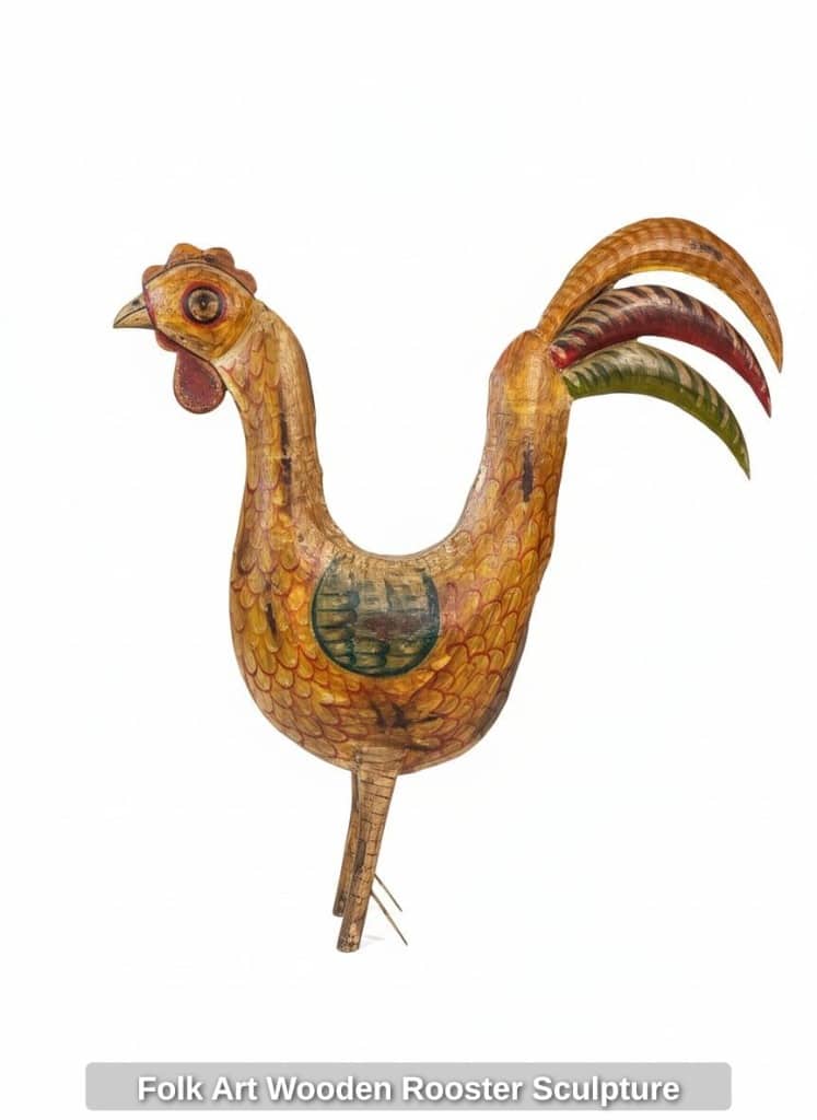 * Folk Art Wooden Rooster Sculpture