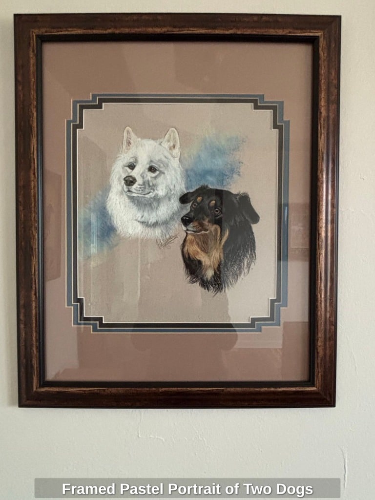 * Framed Pastel Portrait of Two Dogs
