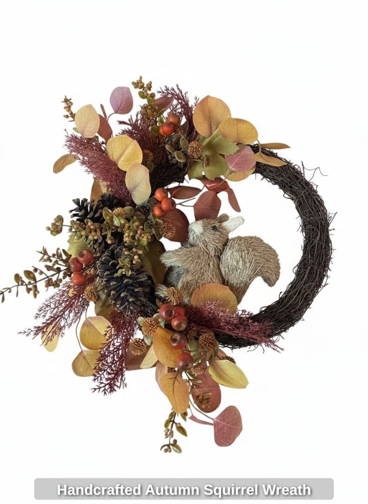 * Handcrafted Autumn Squirrel Wreath