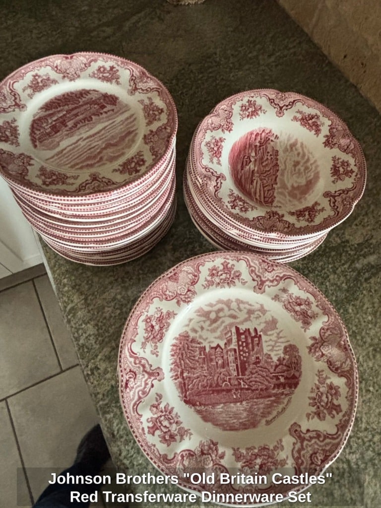 * Johnson Brothers “Old Britain Castles” Red Transferware Dinnerware Set