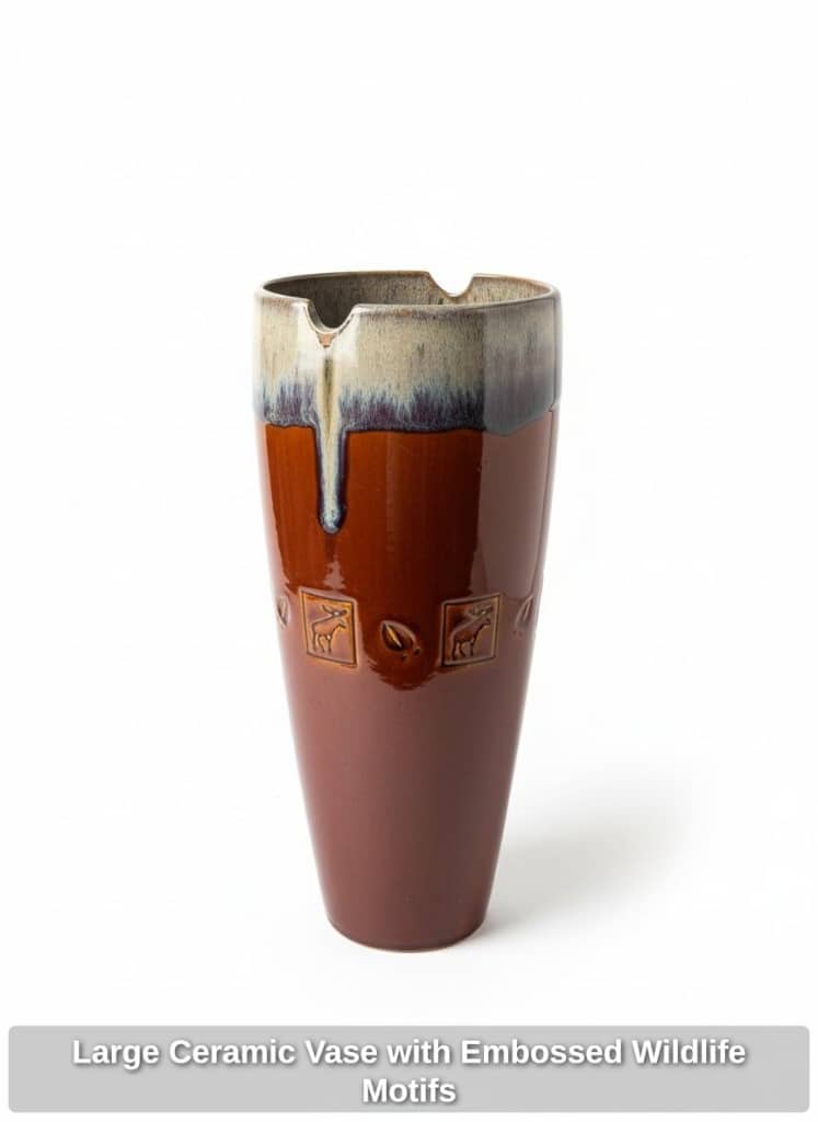 * Large Ceramic Vase with Embossed Wildlife Motifs