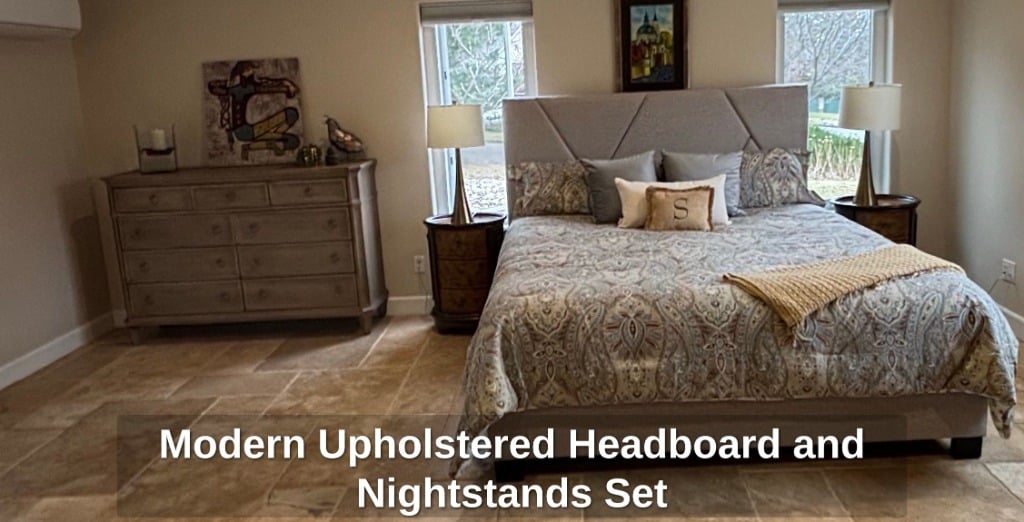 * Modern Upholstered Headboard and Nightstands Set