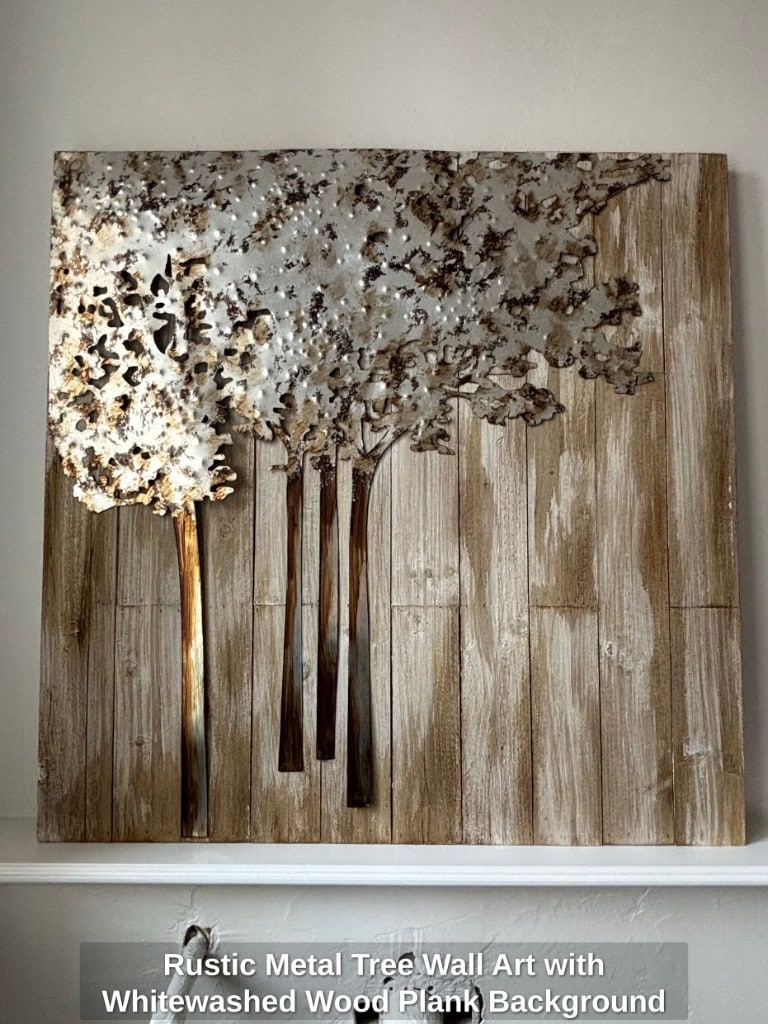 * Rustic Metal Tree Wall Art with Whitewashed Wood Plank Background
