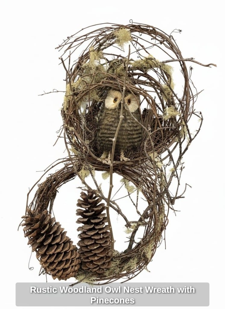* Rustic Woodland Owl Nest Wreath with Pinecones