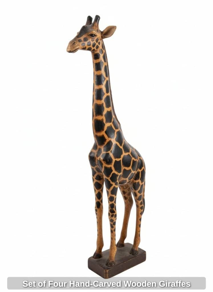 * Set of Four Hand-Carved Wooden Giraffes