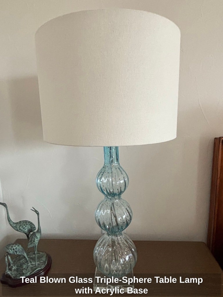 * Teal Blown Glass Triple-Sphere Table Lamp with Acrylic Base