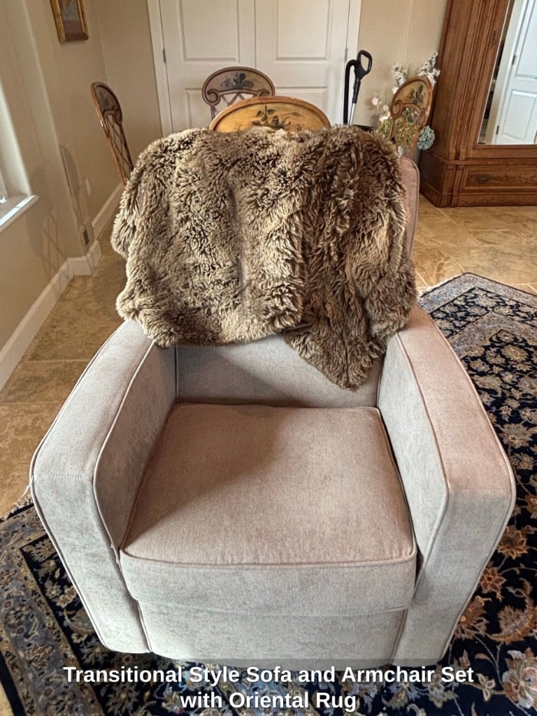 * Transitional Style Sofa and Armchair Set with Oriental Rug