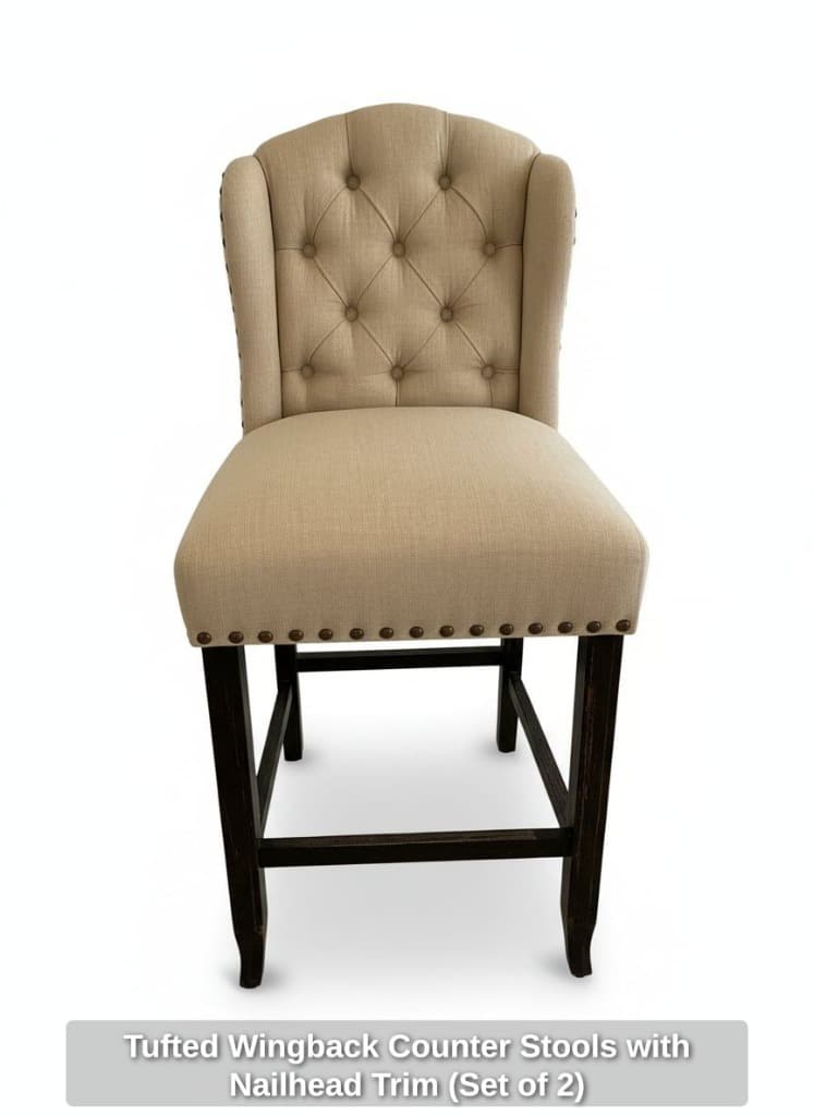 * Tufted Wingback Counter Stools with Nailhead Trim (Set of 2)