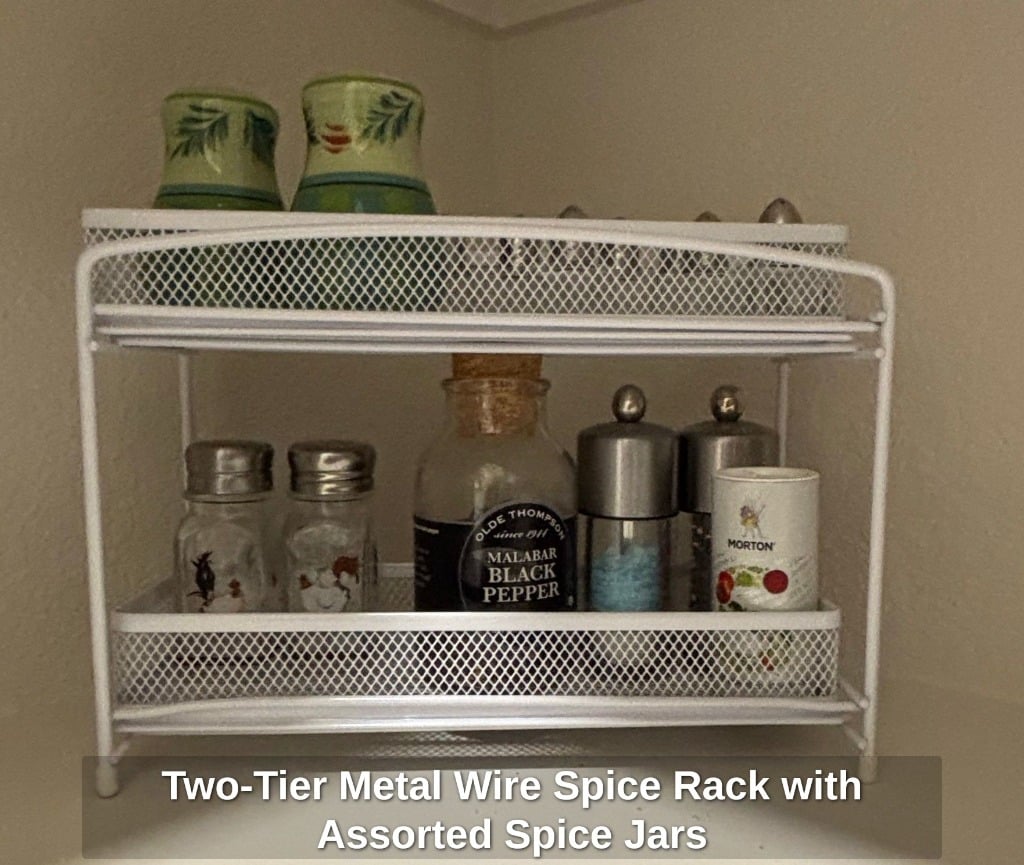 * Two-Tier Metal Wire Spice Rack with Assorted Spice Jars