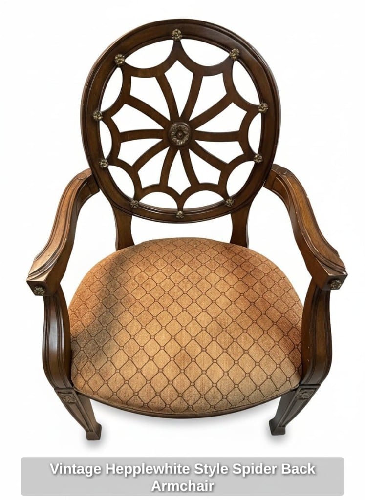 * Vintage Hepplewhite Style Spider Back Armchair