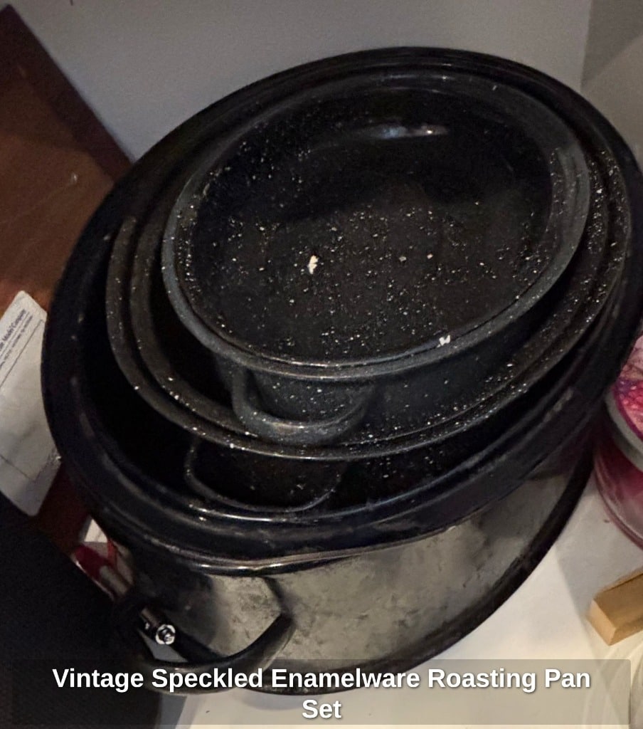 * Vintage Speckled Enamelware Roasting Pan Set