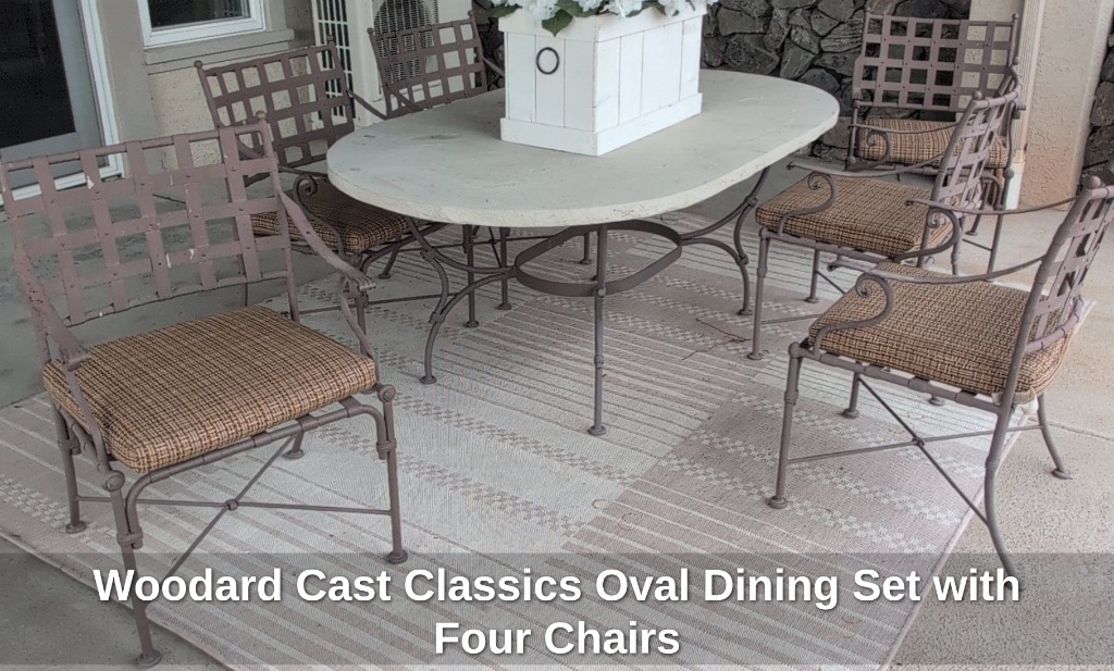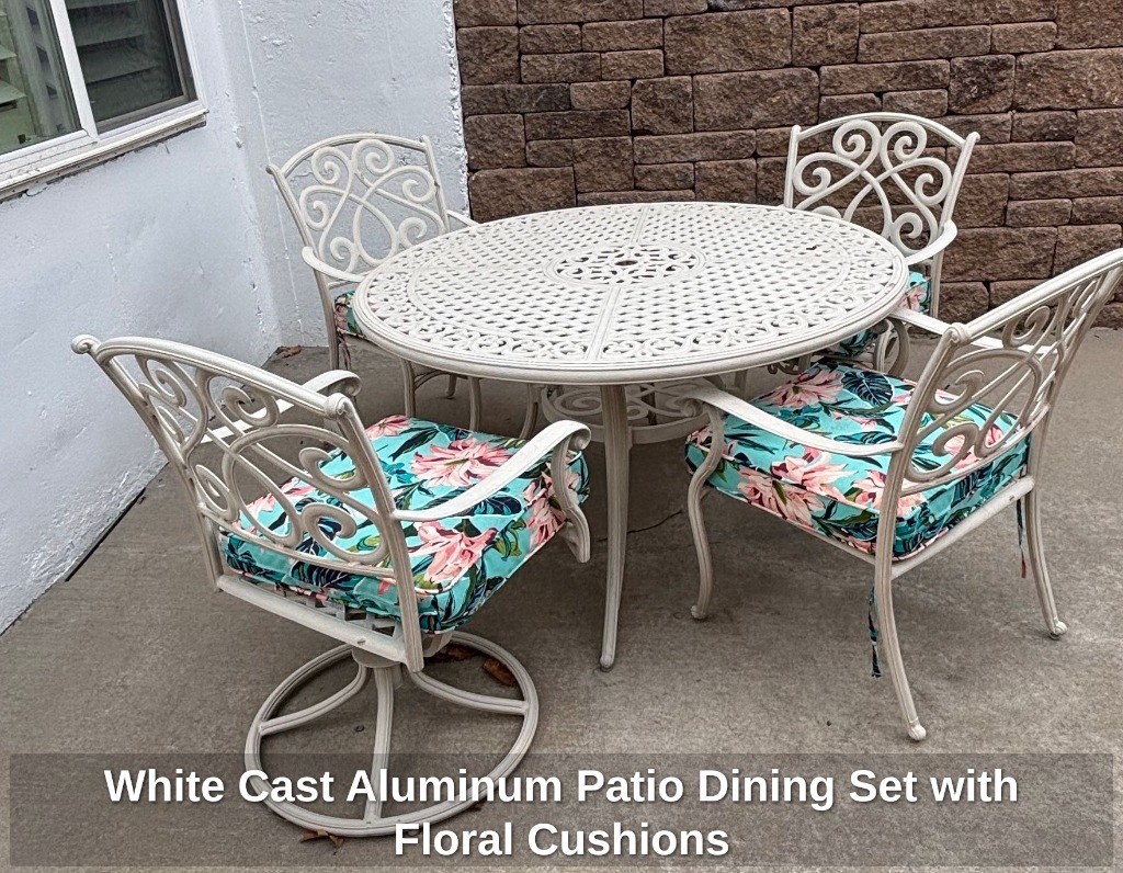 * White Cast Aluminum Patio Dining Set with Floral Cushions