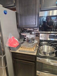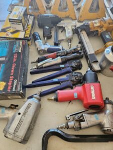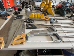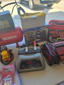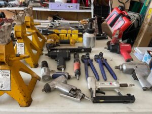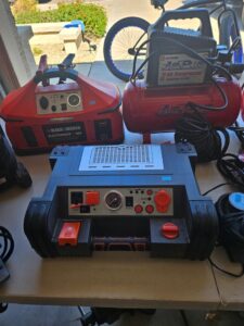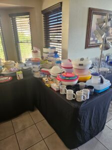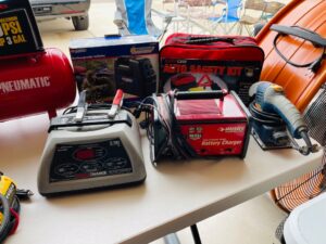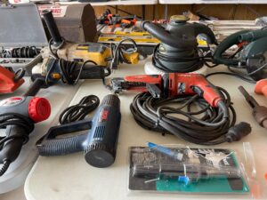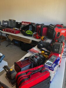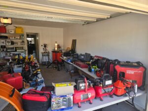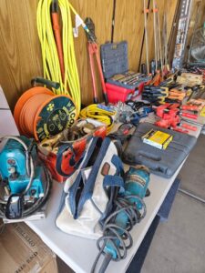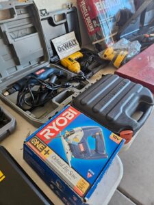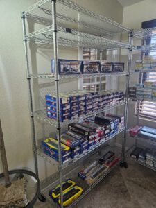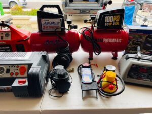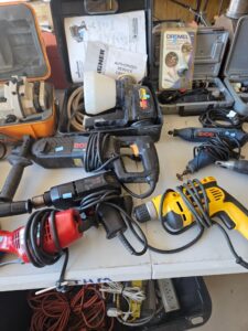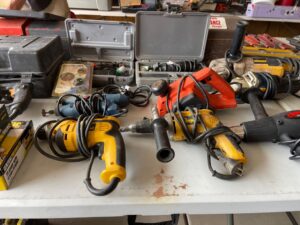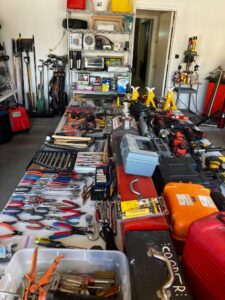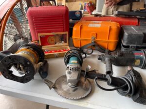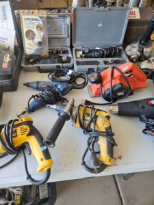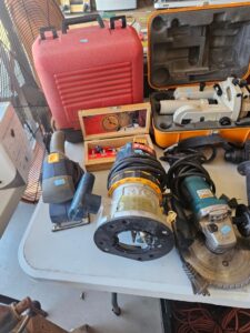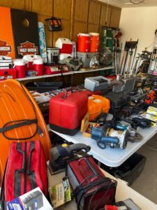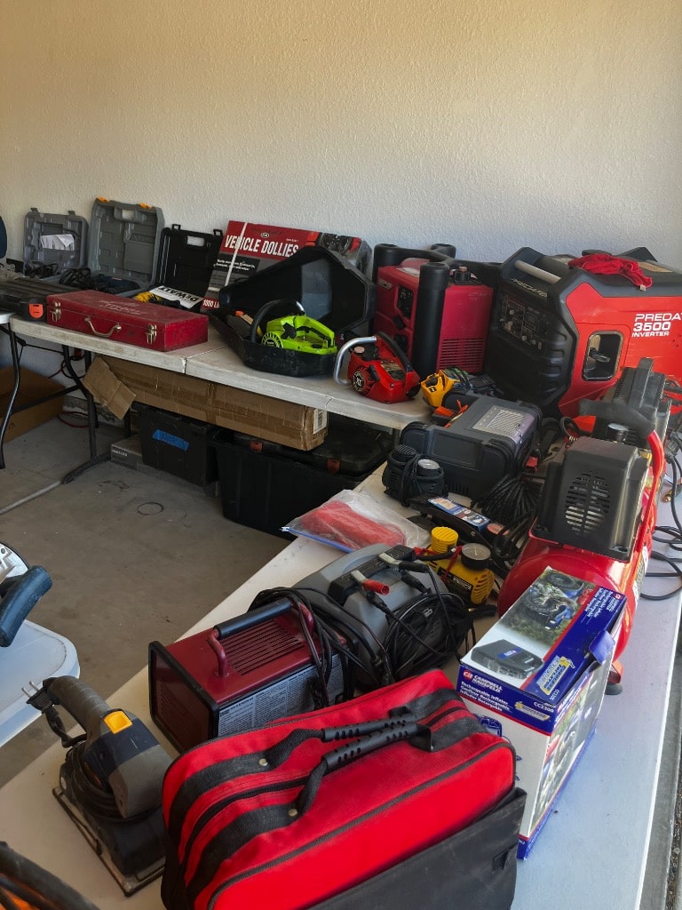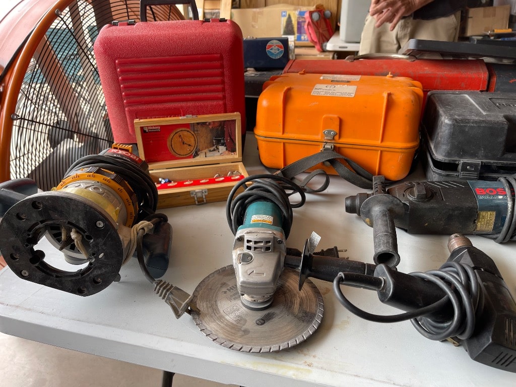 This sale features a massive train collection, over 100 train videos, train books and magazines, hand tools, power tools, industrial power tools, 6” and 5” bench presses, 46” commercial orange fan, Predator generator, compressors, Harley corn hole, reclining leather sofa, beautiful room divider, desk, pots and pans, Heritage Steel Pans, Tupperware, upright freezer, small refrigerator, art work, men and women’s clothing, firearms and so much more.