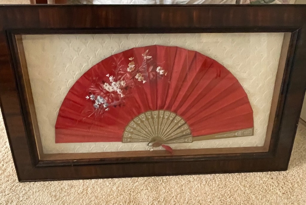 Framed Antique Painted Silk/Satin Fan