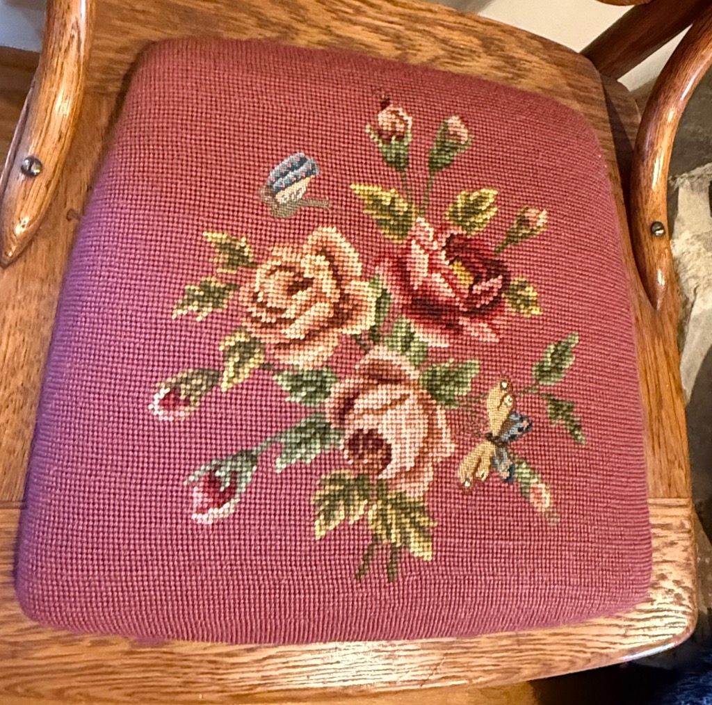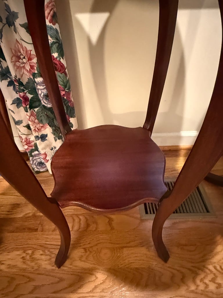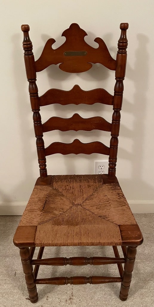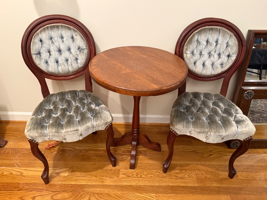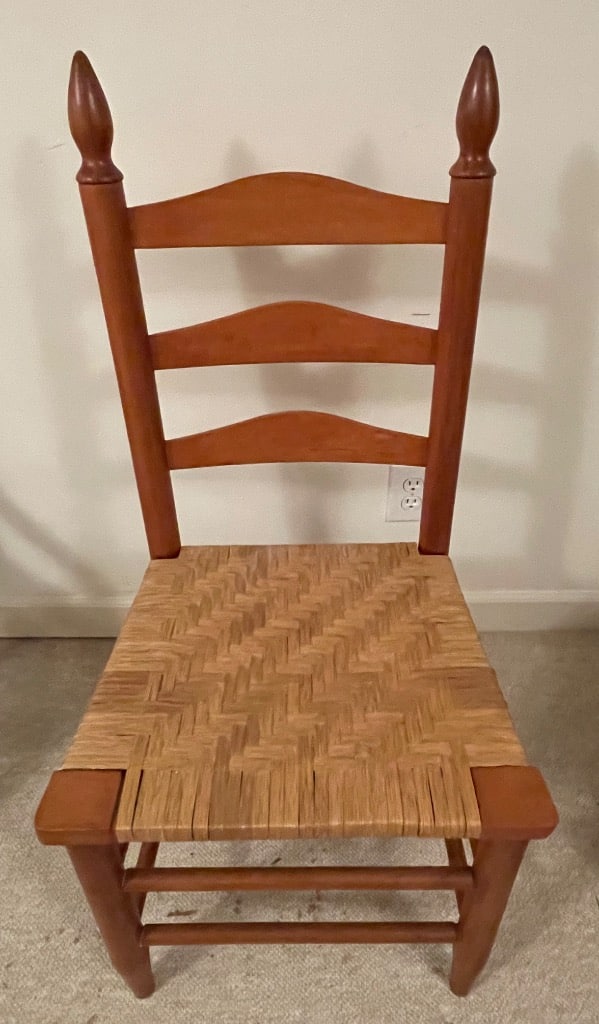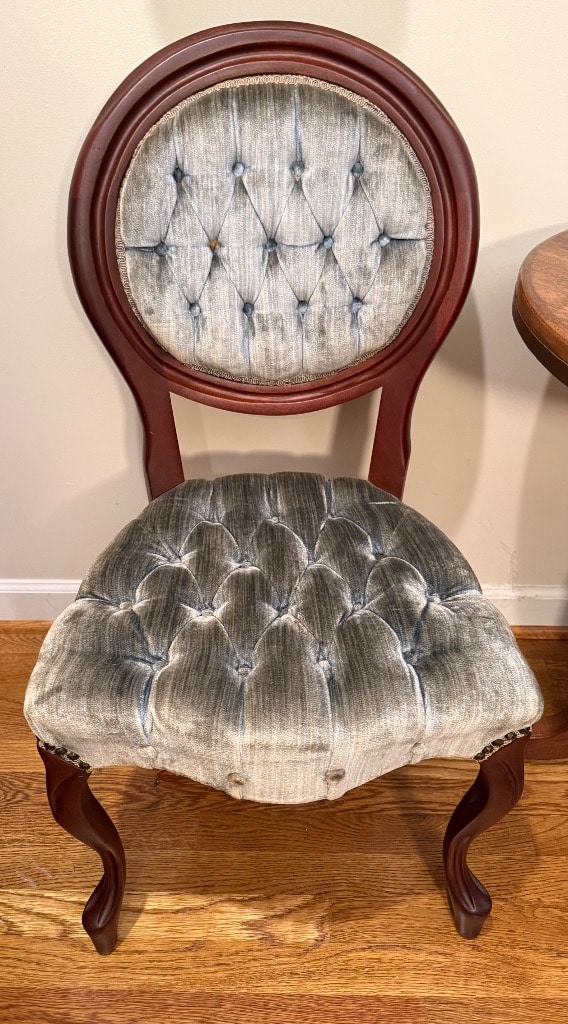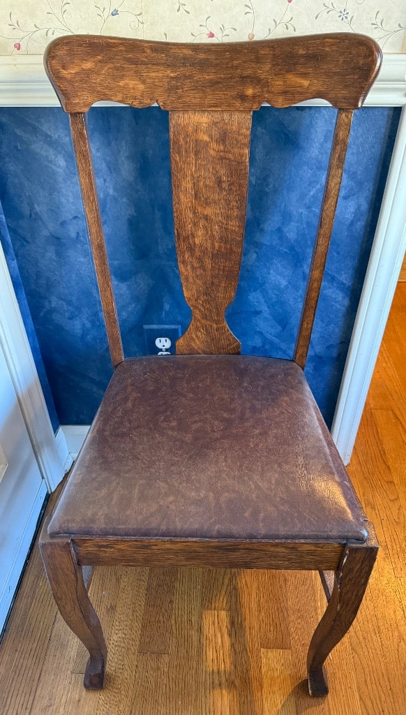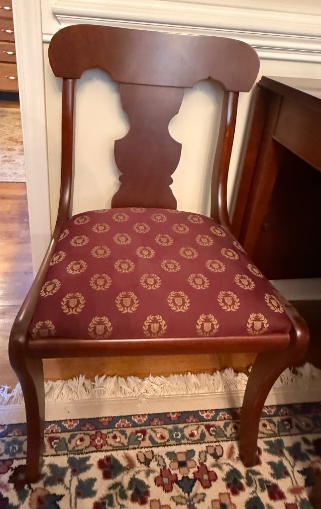 Splat Back Side Chairs (1 Carver) with Burgundy and Gold Upholstred Seats – 3