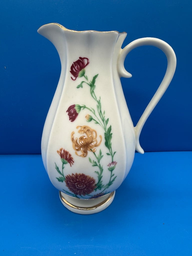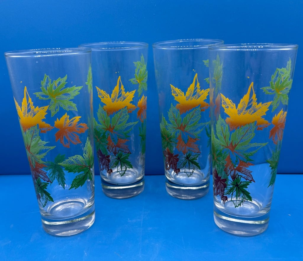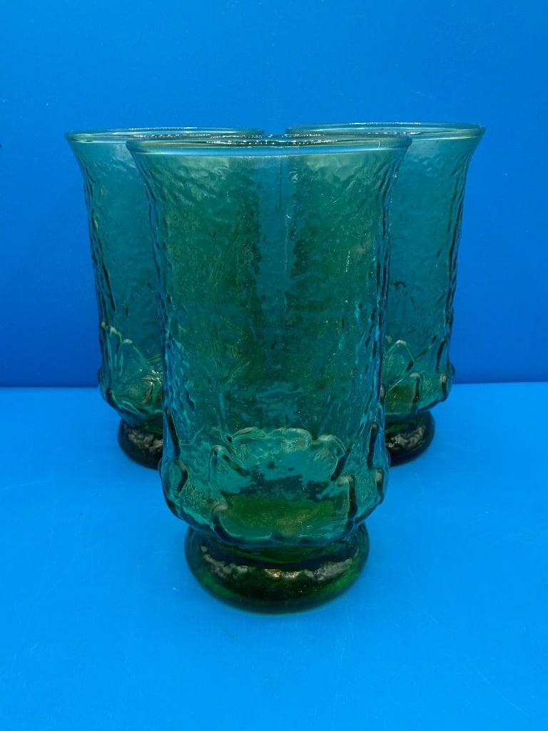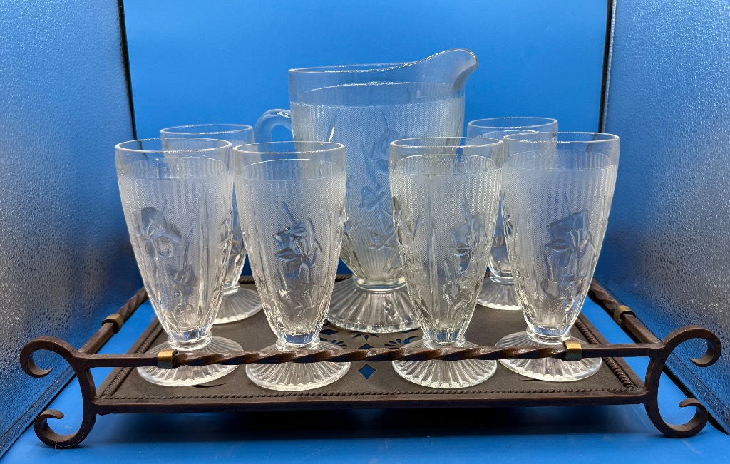 Jeanette Glass Iris and Herringbone Footed Iced Tea Glasses (6) with Pitcher